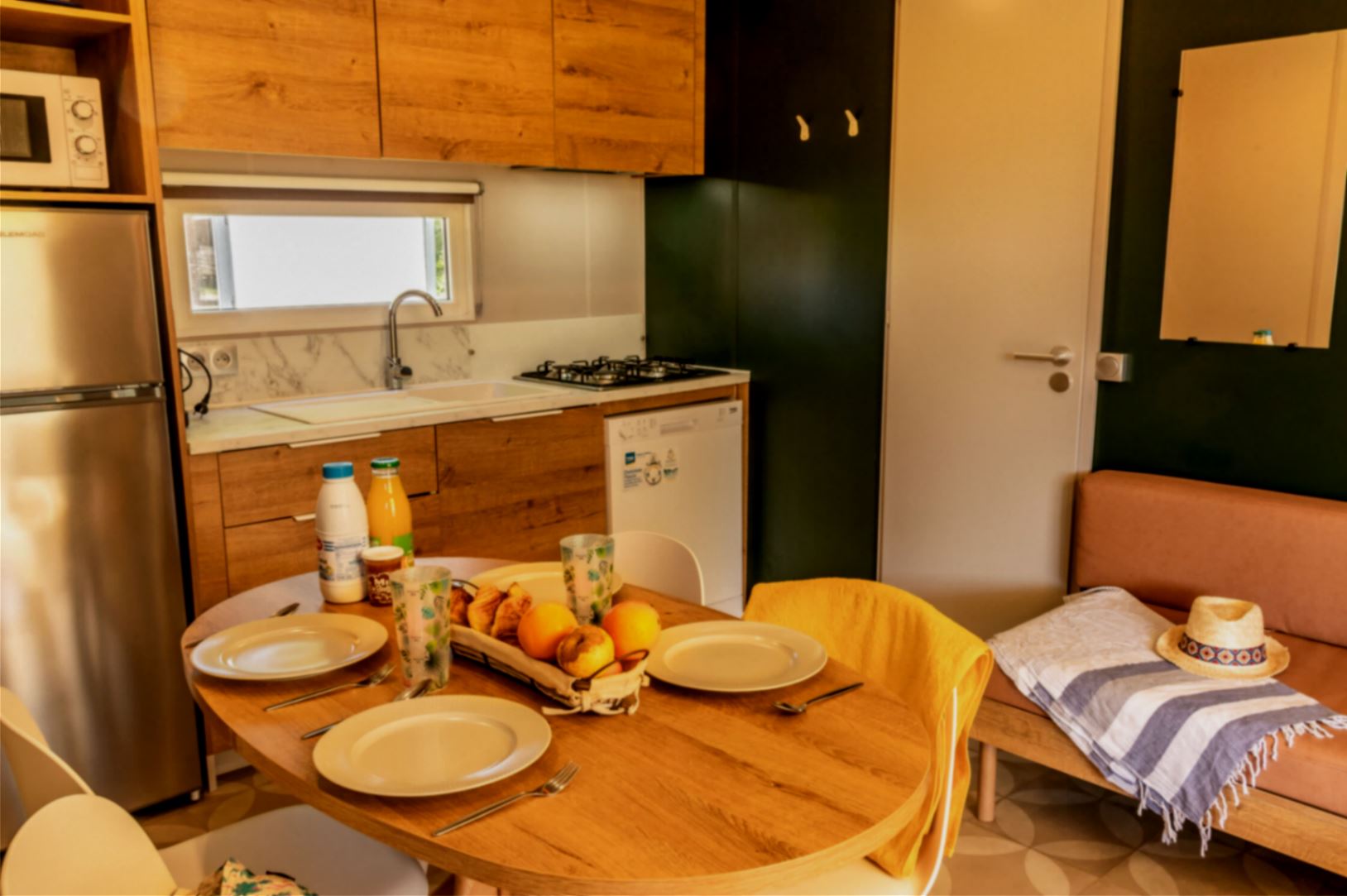 Le mobile-home Premium Alizé est équipé de 2 chambres / 2 salles d'eau / 4 personnes max / 35m²